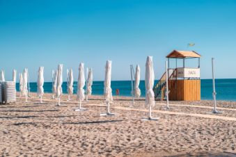 Инфраструктура: пляж — 1 минута , бассейн с детской зоной и гидромассажем , ресторан и деткафе , тренажёрный зал, детплощадка, закрытая территория без машин, видеонаблюдение, смарткарты. Курорт САГА — западное побережье Крыма, на косе между Чёрным морем и розовым озером Сасык-Сиваш: чистый воздух и красивые закаты.