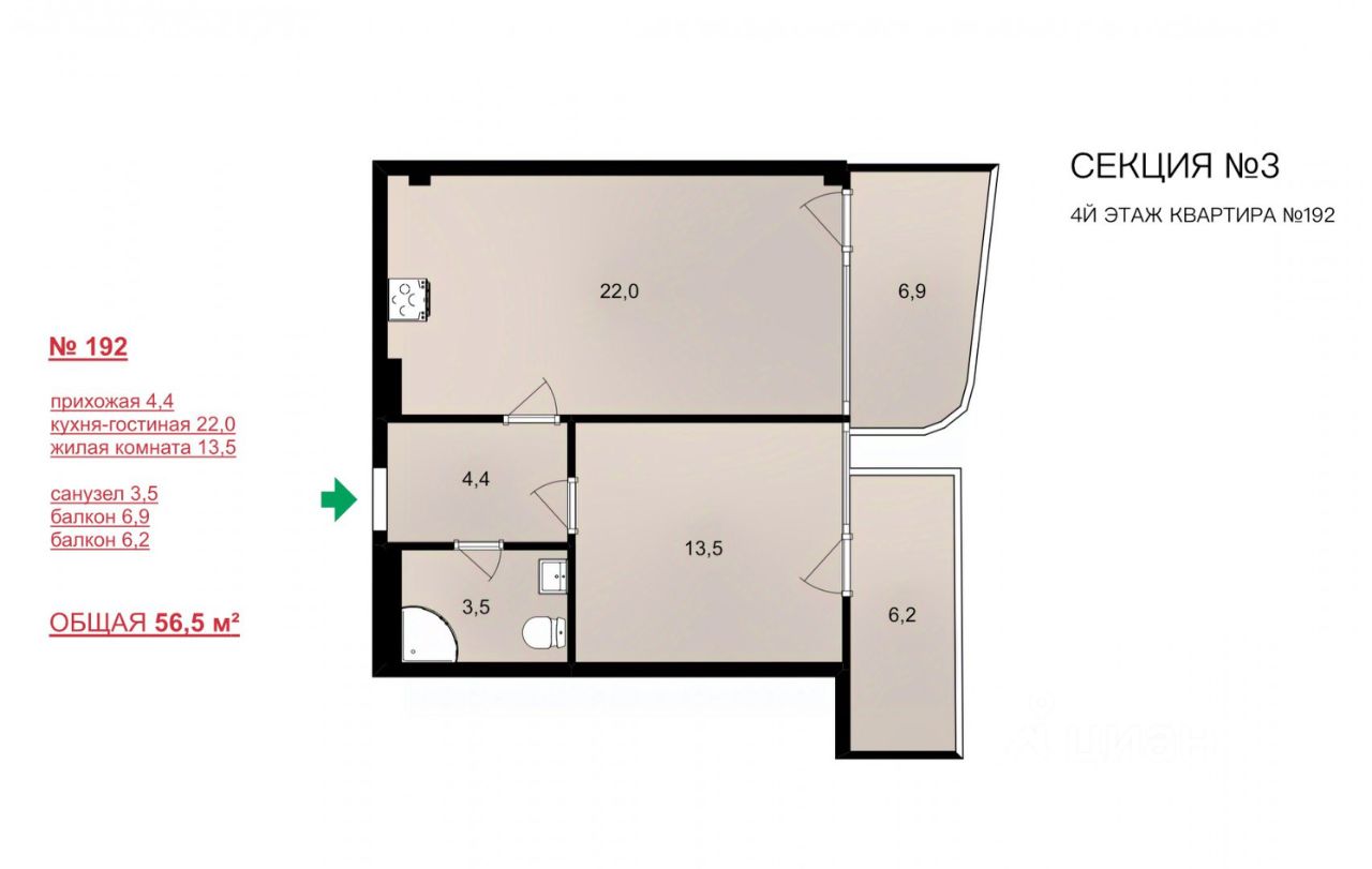 Общей площадью 56,5 кв.м. Видео вышлю по запросу.