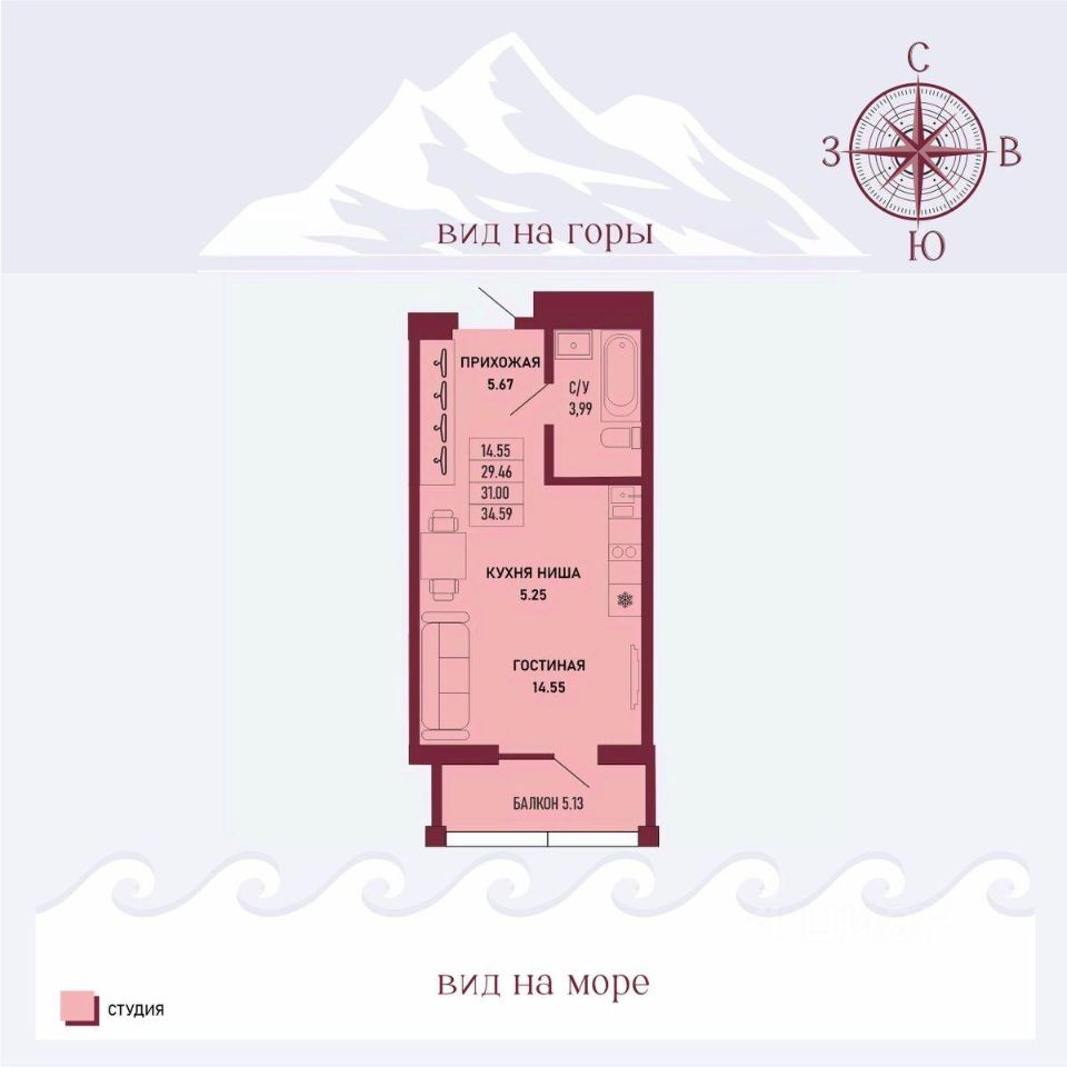 Продается студия, 31 м²