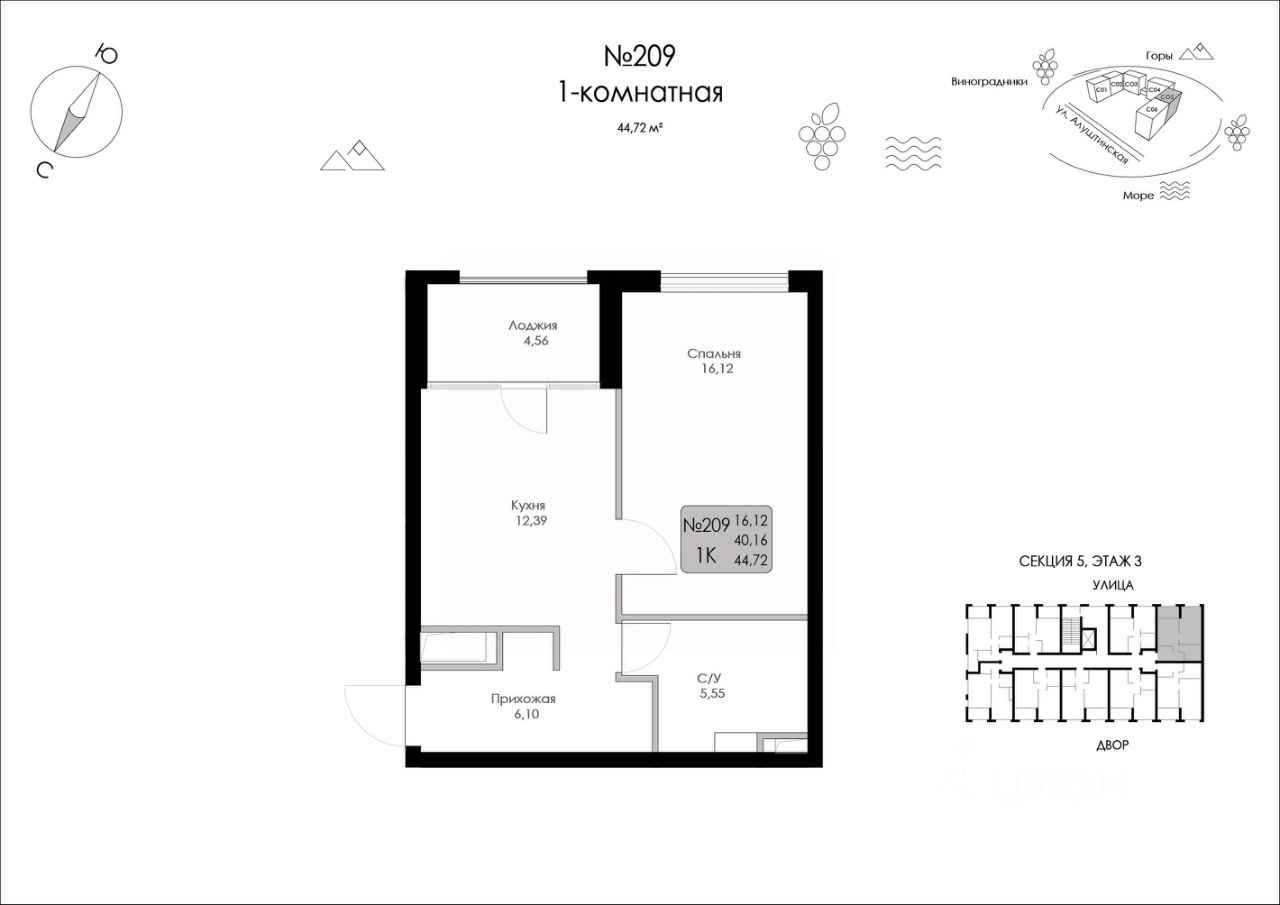 Продается квартира общей площадью 44,72 м2 в комплексе бизнес-класса "Долина Роз" в г. Судак.
