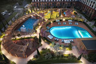 — Открытый бассейн с зонами отдыха и шезлонгами;