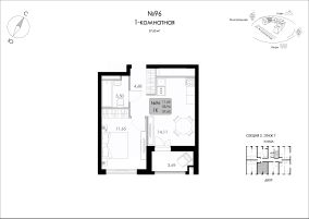 Продаётся 1-комнатная квартира в строящемся доме (Строение 1), срок сдачи: I-кв. 2027, общей площадью 37.63 кв.м., на 7 этаже.