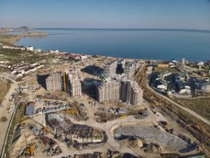 Балкон и высокие потолки, панорамные окна на мыс Хамелеон и потухший вулкан Кара- Даг, предчистовая отделка white-box.