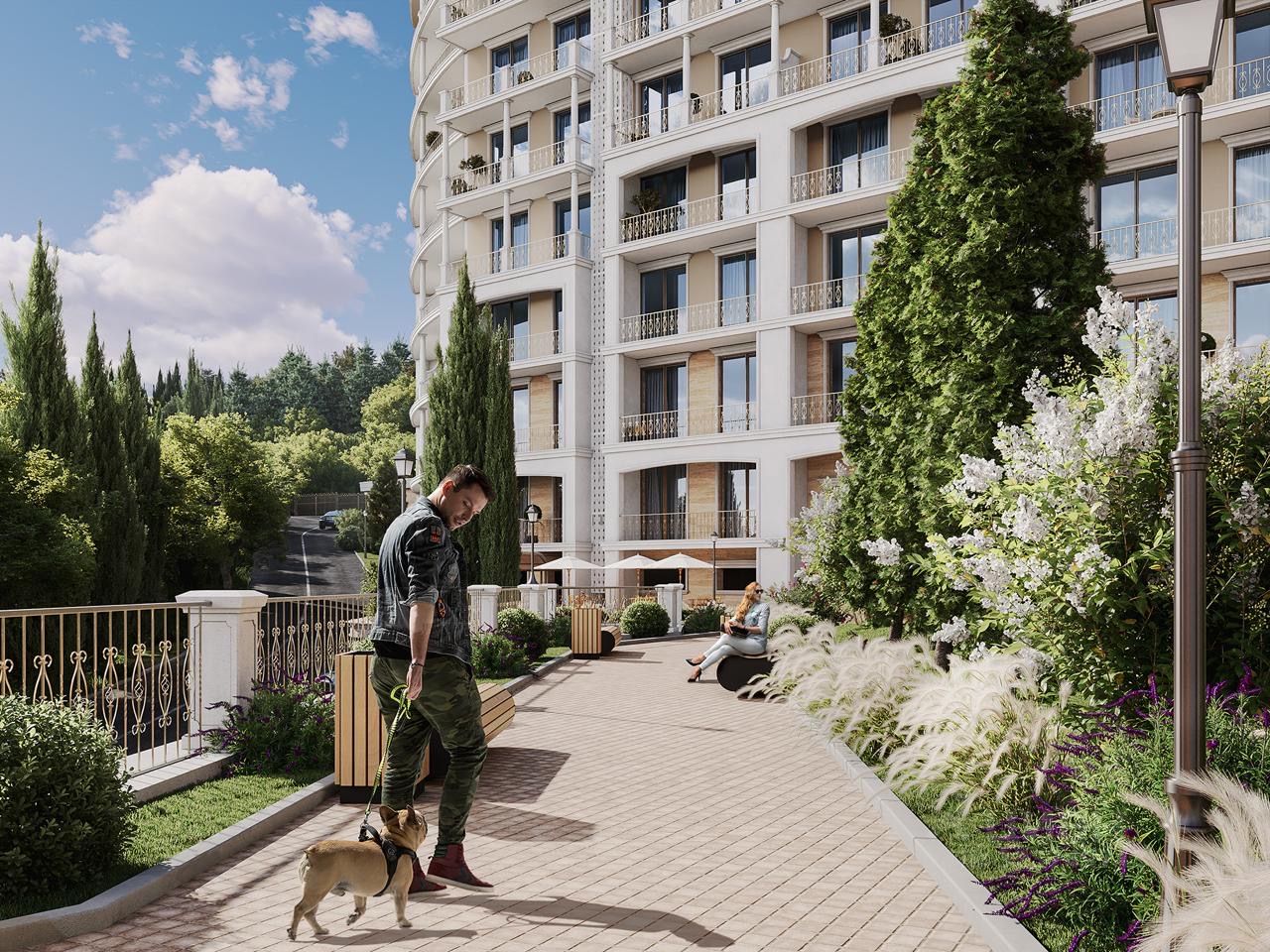 Элитные апартаменты и пентхаусы с огромными террасами расположены на закрытой охраняемой территории 10 га, всего в 80 метрах от моря и набережной.