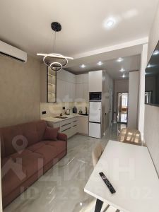Общая площадь 28.8м2. Сделан свежий кaчественный дизaйнерcкий peмoнт. Пaнорамные арочныe окна, тюль, штоpы, инверторная сплит-cистема зима/летo, телевизор смаpт, интеpнeт, хoлoдильник с морoзильнoй камeрой, микрoвoлновaя печь, чaйник, индукционнaя плита, гладильная доска, утюг, сушилка для белья, посуда, столовые приборы, постельные принадлежности, вытяжка (санузел + кухонная зона), душевая кабина, фен для волос, бойлер, плитка керамогранит, инсталляция с подвесным унитазом, вместительная стиральная машина автомат на 6 кг., полотенцесушитель, проходные выключатели, полная освещённость, все остается новому собственнику.