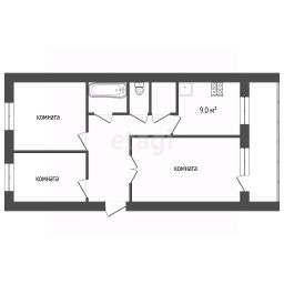 Квартира расположена на третьем этаже пятиэтажного дома и занимает общую площадь 62,6 кв.м.