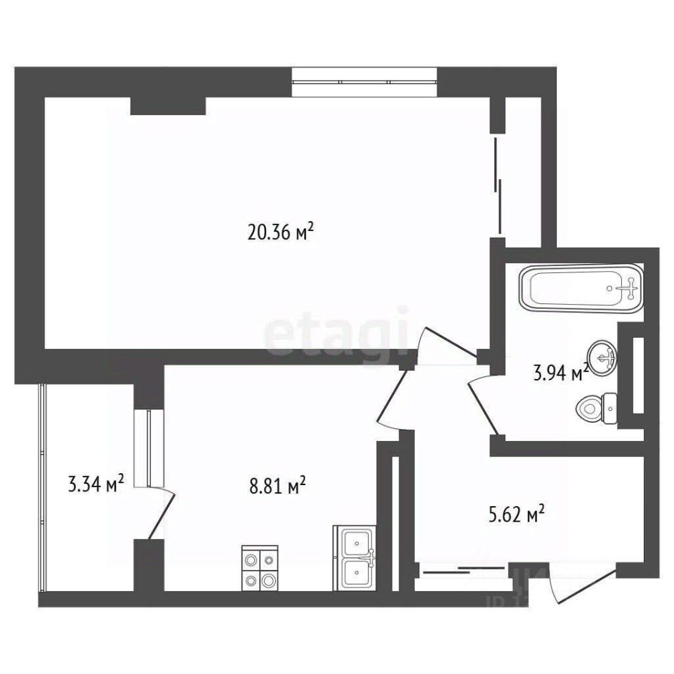Просторная планировка с жилой зоной 20 м² и кухней 9 м² создает комфортное и функциональное жилое пространство для одного человека или пары.