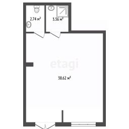Общая площадь помещения составляет 44.8 квадратных метра, потолки высотой 2.7 метра. Санузел раздельный, что позволяет удобно использовать пространство. Коммерческое помещение не угловое. Помещение дает возможность создать современный и уникальный интерьер. Справа от апартаментов находится красивый фонтан.