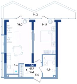 Общая площадь61,7 м²