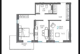 Продаётся 2-комнатная квартира в жилом комплексе комфорт-класса Бакунинский.