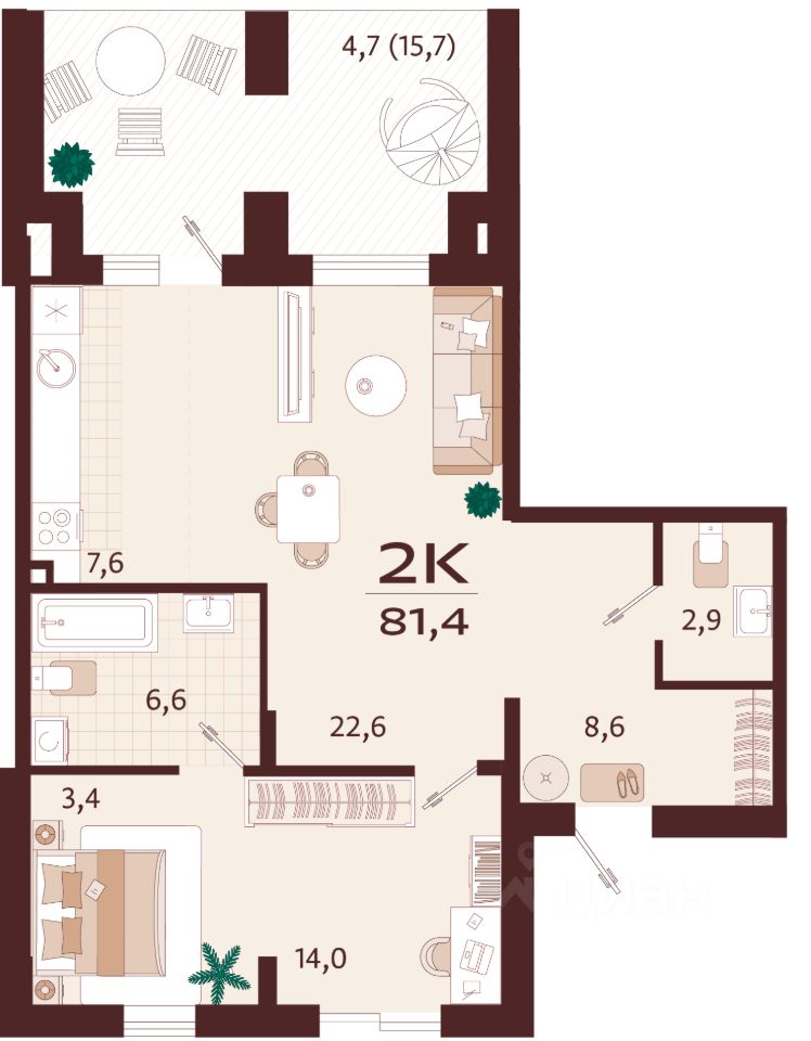 Продаётся 2-комнатная квартира в строящемся доме (Корпус 3), срок сдачи: II-кв. 2027, общей площадью 81.4 кв.м., на 1 этаже. Жилой комплекс бизнес-класса "РОЯЛТА" от застройщика "ГК ТОЧНО" в городе Ялта Республики Крым на улице Спендиарова.