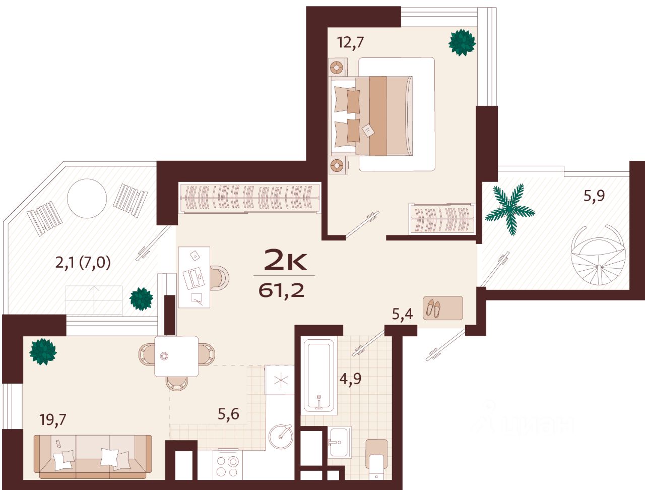 Продаётся 2-комнатная квартира в строящемся доме (Корпус 3), срок сдачи: II-кв. 2027, общей площадью 61.2 кв.м., на 2 этаже. Жилой комплекс бизнес-класса "РОЯЛТА" от застройщика "ГК ТОЧНО" в городе Ялта Республики Крым на улице Спендиарова.