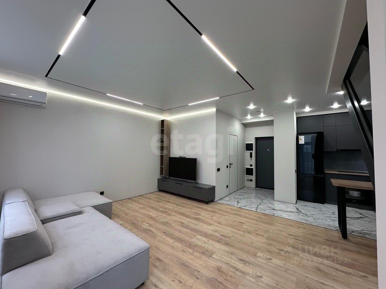 В квартире сделан современный качественный ремонт с использованием дорогостоящих материалов и техники. Установлены кондиционеры. Теплый пол в кухне, коридоре, туалете и ванной. Квартира полностью подготовлена к проживанию, оборудована современной мебелью и техникой: электроплита, стиральная и посудомоечная машинки, холодильник, телевизор. Есть все необходимое для комфортного проживания.