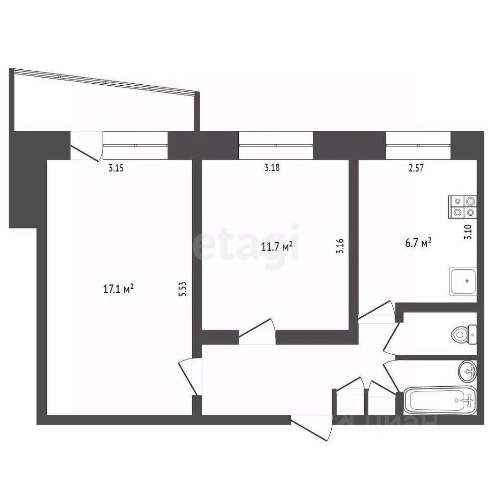 • 46,8 КВ.М. СВОБОДЫ И КОМФОРТА! Простор, который вы искали! Комнаты изолированные!