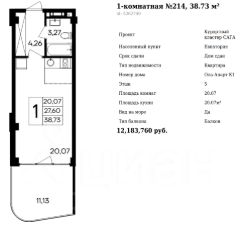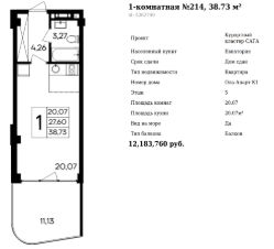Высота потолков 2.7 метра. Статус помещений Апартаменты. Тип дома монолитно - кирпичный.