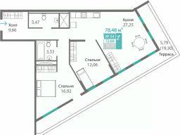 Продаётся 2-комнатная квартира в строящемся доме (Дом 4 (Секция Т5)), срок сдачи: I-кв. 2029, общей площадью 72.69 кв.м., на 7 этаже. Новый жилой комплекс "Благо" от застройщика "Монолит" расположен по адресу: Республика Крым, Симферопольский район, село Перово