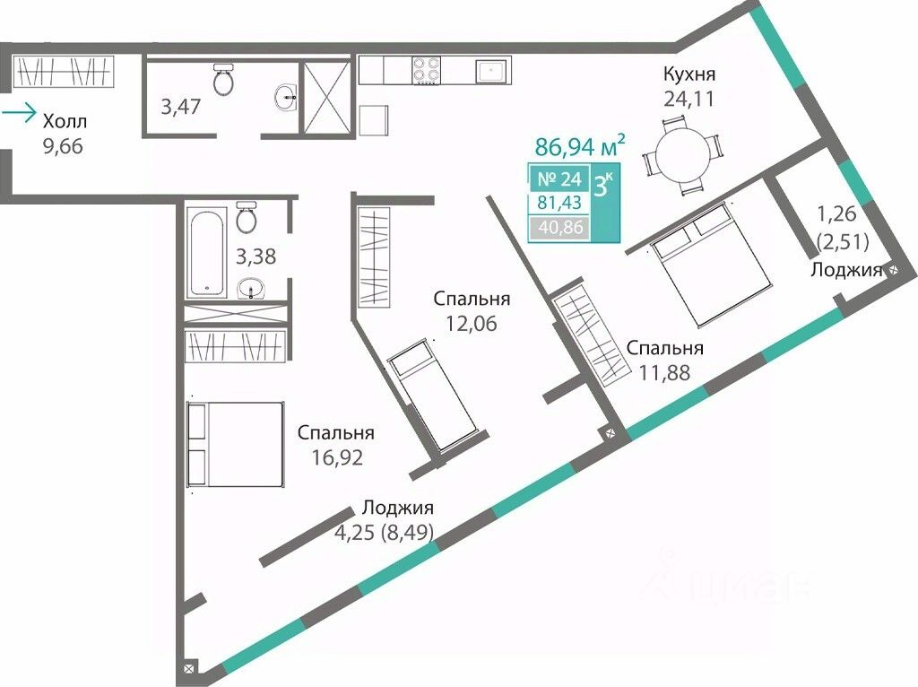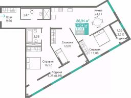 Продаётся 3-комнатная квартира в строящемся доме (Дом 4 (Секция Т5)), срок сдачи: I-кв. 2029, общей площадью 81.43 кв.м., на 4 этаже. Новый жилой комплекс "Благо" от застройщика "Монолит" расположен по адресу: Республика Крым, Симферопольский район, село Перово