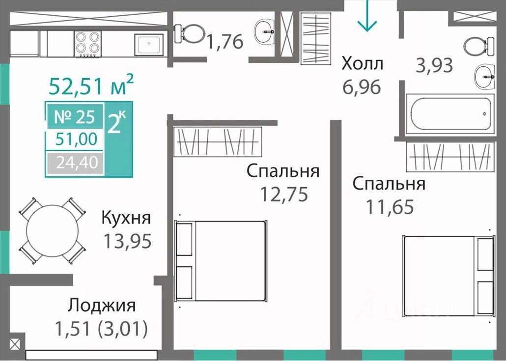 Продаётся 2-комнатная квартира в строящемся доме (Дом 3 (Секции Т3.3, К3КП2)), срок сдачи: I-кв. 2029, общей площадью 51 кв.м., на 5 этаже. Новый жилой комплекс "Благо" от застройщика "Монолит" расположен по адресу: Республика Крым, Симферопольский район, село Перово