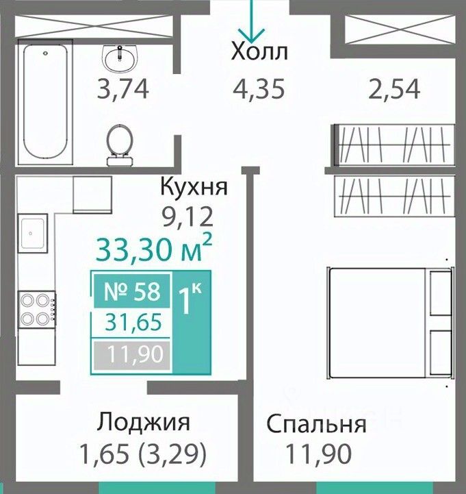Продаётся 1-комнатная квартира в строящемся доме (Дом 2 (Секции Т2.1, Т2, К3КП1)), срок сдачи: I-кв. 2029, общей площадью 31.65 кв.м., на 3 этаже. Новый жилой комплекс "Благо" от застройщика "Монолит" расположен по адресу: Республика Крым, Симферопольский район, село Перово