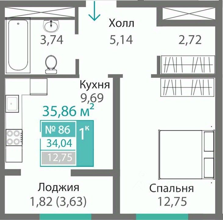 35,86 м²