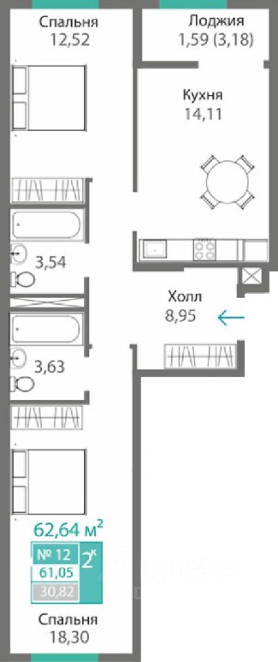 62,64 м²