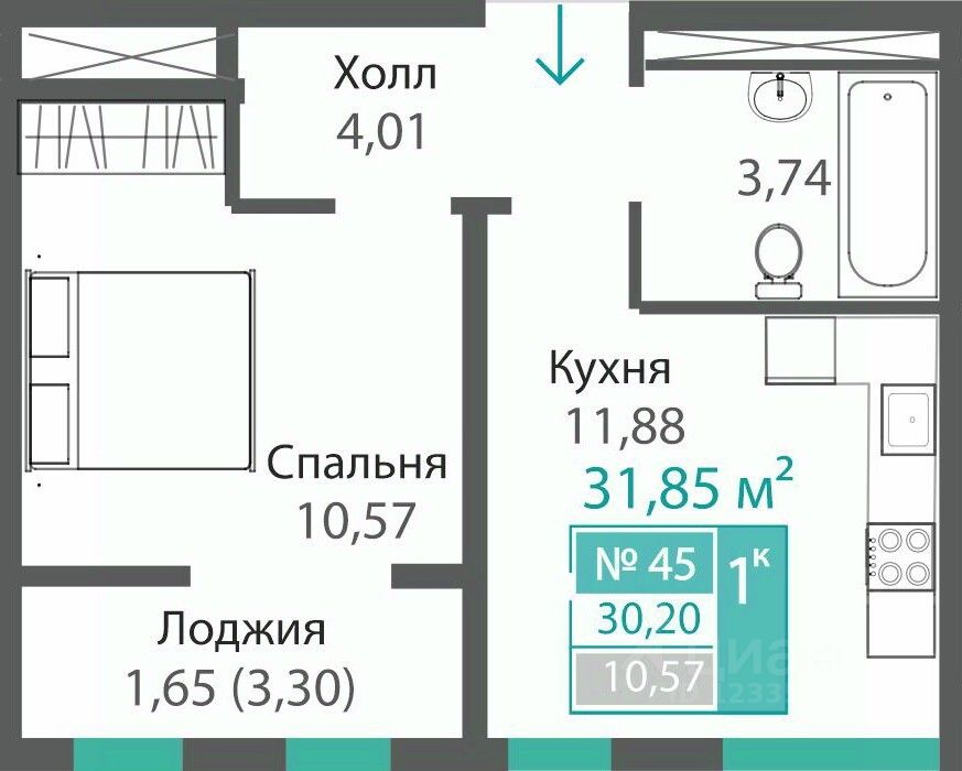 31,85 м²