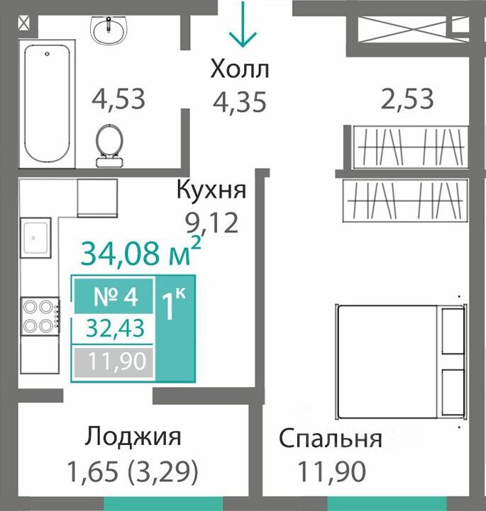 Продаётся 1-комнатная квартира в строящемся доме (Дом 1 (Секции Т2.2, Т4.1)), срок сдачи: I-кв. 2029, общей площадью 32.43 кв.м., на 2 этаже. Новый жилой комплекс "Благо" от застройщика "Монолит" расположен по адресу: Республика Крым, Симферопольский район, село Перово