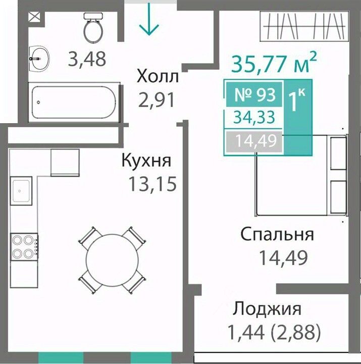 34,33 м²