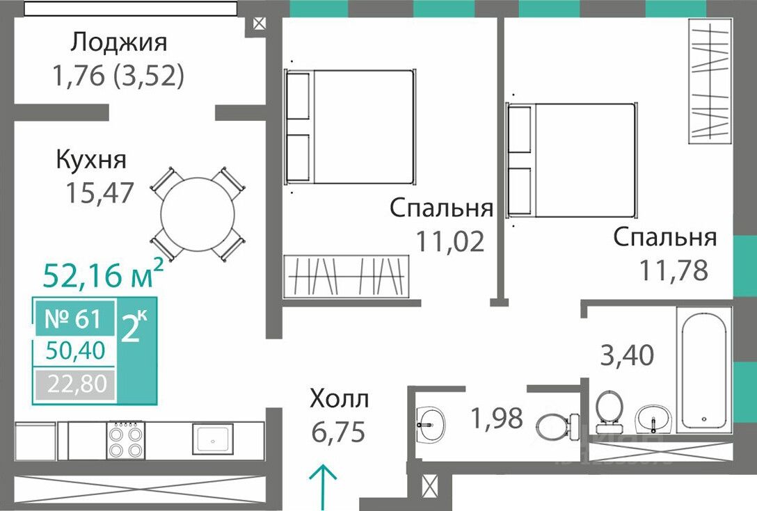 Продаётся 2-комнатная квартира в строящемся доме (Дом 1 (Секции Т2.2, Т4.1)), срок сдачи: I-кв. 2029, общей площадью 50.4 кв.м., на 7 этаже. Новый жилой комплекс "Благо" от застройщика "Монолит" расположен по адресу: Республика Крым, Симферопольский район, село Перово