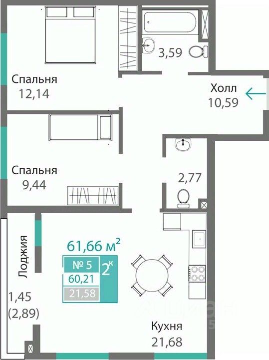 Продаётся 2-комнатная квартира в строящемся доме (Дом 1 (Секции Т2.2, Т4.1)), срок сдачи: I-кв. 2029, общей площадью 60.21 кв.м., на 2 этаже. Новый жилой комплекс "Благо" от застройщика "Монолит" расположен по адресу: Республика Крым, Симферопольский район, село Перово