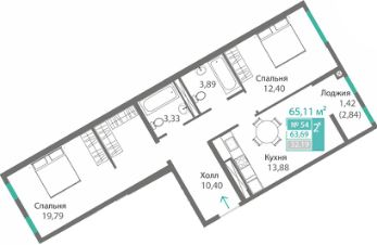 Продаётся 2-комнатная квартира в строящемся доме (Дом 1 (Секции Т2.2, Т4.1)), срок сдачи: I-кв. 2029, общей площадью 63.69 кв.м., на 2 этаже. Новый жилой комплекс "Благо" от застройщика "Монолит" расположен по адресу: Республика Крым, Симферопольский район, село Перово