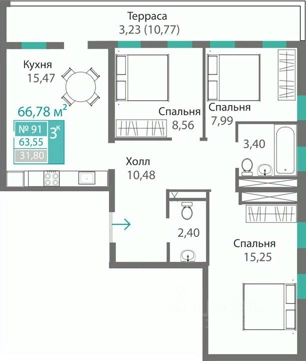 Продаётся 3-комнатная квартира в строящемся доме (Дом 1 (Секции Т2.2, Т4.1)), срок сдачи: I-кв. 2029, общей площадью 63.55 кв.м., на 9 этаже. Новый жилой комплекс "Благо" от застройщика "Монолит" расположен по адресу: Республика Крым, Симферопольский район, село Перово