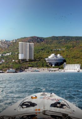 Комплекс расположен на берегу, всего в 180 метрах от Золотого пляжа, в 5 км от центра Ялты, и в нескольких десятках метров от знаменитой Царской (Солнечной) тропы. Первая линия, потрясающие виды на море, горы Аю-Даг и Ай-Петри, Ласточкино гнездо.
