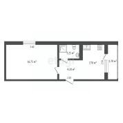 Просторная комната, кухня, санузел совмещен. В основной комнате нет окна, кухня просторная с выходом в лоджию. Отопление центральное.