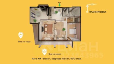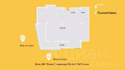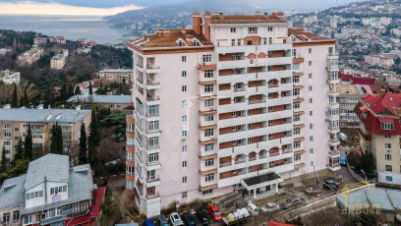 В продаже просторная квартира 152 м² с видом на горы и море, расположенная на 10-м этаже двенадцатиэтажного жилого комплекса комфорт-класса Эгоист в благоустроенном спальном микрорайоне Ялты.