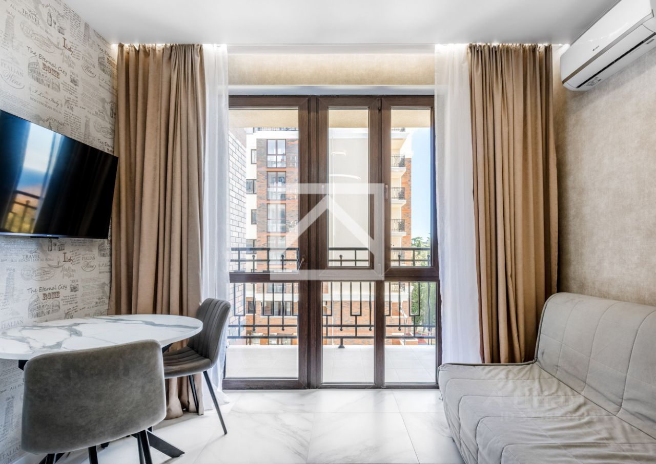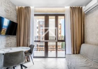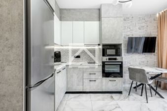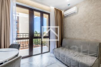 Апартаменты (45.8 м²) расположены на 4 этаже 8-этажного дома. Ключевыми преимуществами апартаментов являются — расположение в закрытом и охраняемом комплексе в тихой локации, современный дизайнерский ремонт с продуманной планировкой и готовность к комфортному проживанию, а также потрясающие виды с террасы.