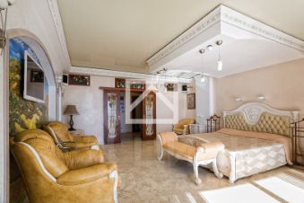 В апартаментах выполнен элегантный ремонт в классическом стиле с элементами неоклассики, подчёркивающий элегантность и уют пространства. Светлая бежево-кремовая палитра, декоративная лепнина, витражные вставки и мебель с резными элементами создают атмосферу утончённого уюта и гармонии. Мраморное напольное покрытие и изящные светильники с золотистыми акцентами подчёркивают благородный характер интерьера, сочетая элегантность и комфорт. Отдельным элементом уюта выступает камин в гостиной, создающий особую атмосферу тепла и располагающий к отдыху в кругу семьи.
