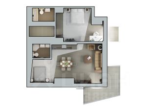 У Застройщика есть возможность показать наглядно, как из такой планировки можно сделать евро-трехкомнатную квартиру. Есть готовый проект, который Вы с легкостью согласуете в МВК. Все шаги узаконивания перепланировки мы подскажем.