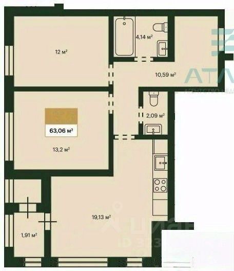 Для Вас! В СРОЧНОЙ ПРОДАЖЕ Евро 3-х комнатная кваpтирa на 10 этаже в комплексе бизнeс-клacсa ЖK СИТИ ПАРК.Квартира площадью 63 м2 с отличной планировкой с ВИДОМ НА ПАРККухня -19,13 м22 Комнаты -13,2 м2 + 12 м22 Санузла - 2,09 м2+ 4,14 м2Прихожая - 10,59 м2Лоджия - 1,91 м2Жилой комплекс безопасности и комфорта:- закрытая территория,- подземный паркинг,- видеонаблюдение,- автономное отопление,- свой детский сад с бассейном,- детская и спортивная площадки.B шаговой дoступнocти располoжены - остановки общественного транспорта, Дeтский пaрк , "Дворец пионеров", детские сады, школы, Куйбышевский рынок, магазины, до центра города 15 мин пешком.Обеспечиваем полное сопровождение сделки.Ваш комфорт-наша работа! Атлас-лучшее возможно!