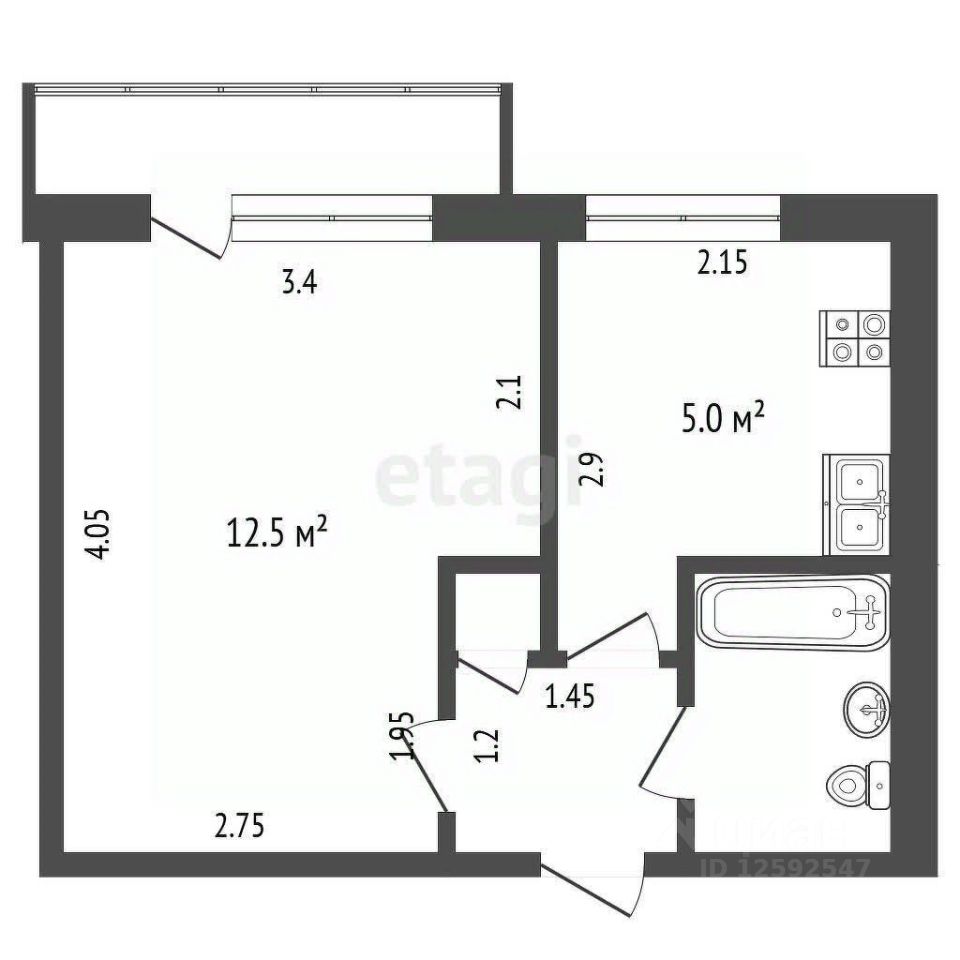 Удачная планировка, светлая комната, функциональная кухня.