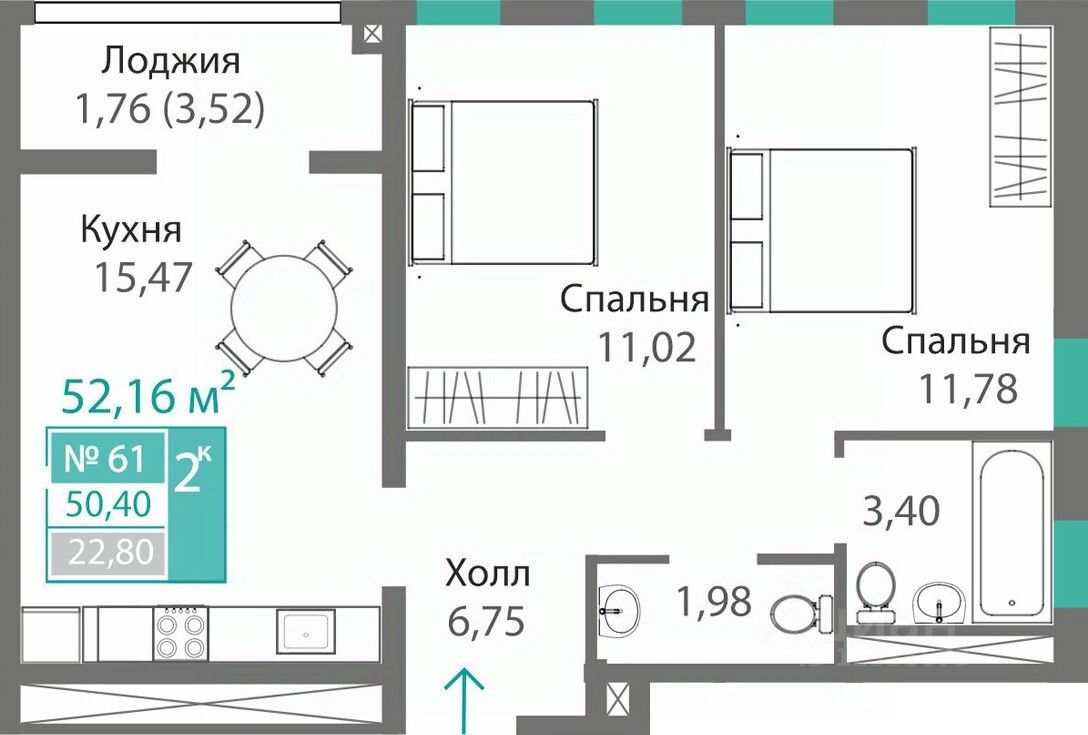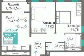 Продаётся 2-комнатная квартира в строящемся доме (Дом 2 (Секции Т2.1, Т2, К3КП1)), срок сдачи: I-кв. 2029, общей площадью 52.16 кв.м., на 4 этаже. Новый жилой комплекс "Благо" от застройщика "Монолит" расположен по адресу: Республика Крым, Симферопольский район, село Перово
