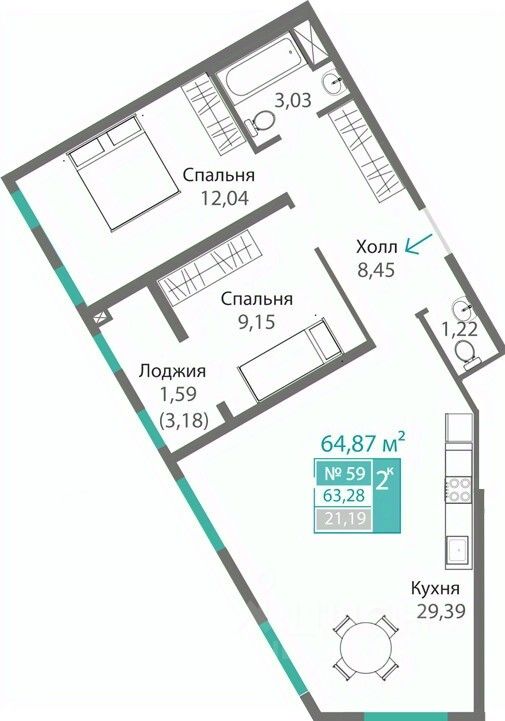 Продаётся 2-комнатная квартира в строящемся доме (Дом 2 (Секции Т2.1, Т2, К3КП1)), срок сдачи: I-кв. 2029, общей площадью 64.87 кв.м., на 6 этаже. Новый жилой комплекс "Благо" от застройщика "Монолит" расположен по адресу: Республика Крым, Симферопольский район, село Перово