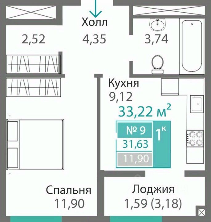 33,22 м²