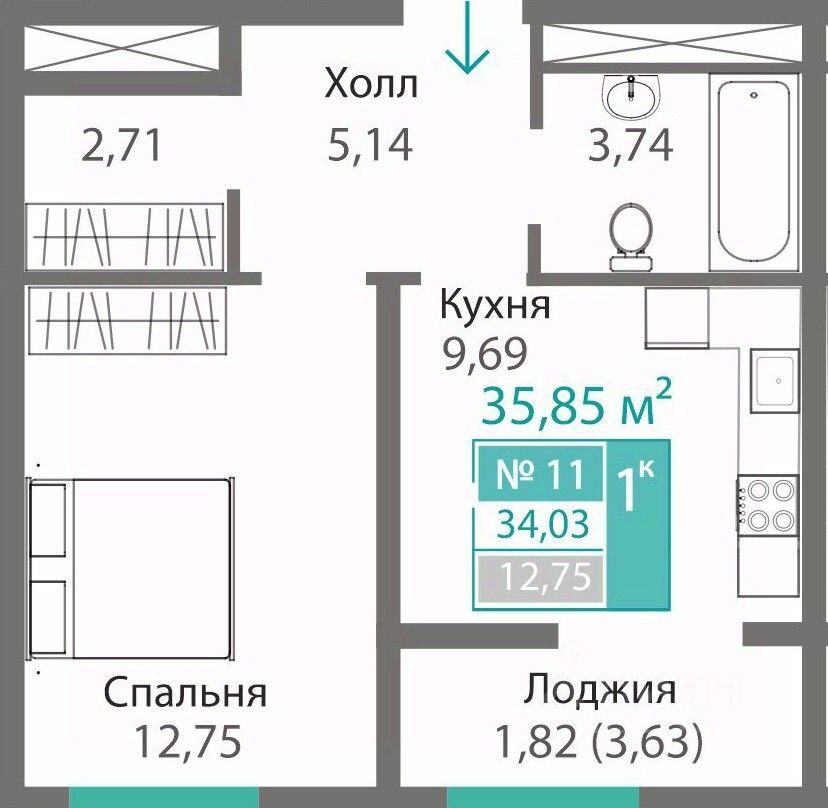 35,85 м²