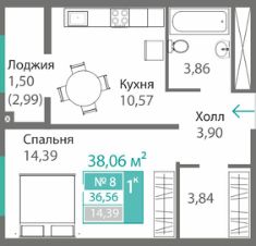 Продаётся 1-комнатная квартира в строящемся доме (Дом 1 (Секции Т2.2, Т4.1)), срок сдачи: I-кв. 2029, общей площадью 38.06 кв.м., на 3 этаже. Новый жилой комплекс "Благо" от застройщика "Монолит" расположен по адресу: Республика Крым, Симферопольский район, село Перово