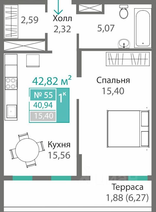 42,82 м²
