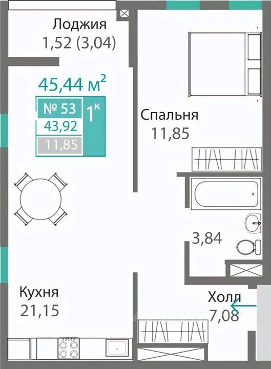 Продаётся 1-комнатная квартира в строящемся доме (Дом 1 (Секции Т2.2, Т4.1)), срок сдачи: I-кв. 2029, общей площадью 45.44 кв.м., на 7 этаже. Новый жилой комплекс "Благо" от застройщика "Монолит" расположен по адресу: Республика Крым, Симферопольский район, село Перово