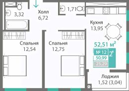 Продаётся 2-комнатная квартира в строящемся доме (Дом 1 (Секции Т2.2, Т4.1)), срок сдачи: I-кв. 2029, общей площадью 52.51 кв.м., на 6 этаже. Новый жилой комплекс "Благо" от застройщика "Монолит" расположен по адресу: Республика Крым, Симферопольский район, село Перово