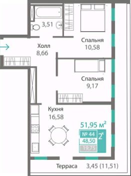 Продаётся 2-комнатная квартира в строящемся доме (Дом 1 (Секции Т2.2, Т4.1)), срок сдачи: I-кв. 2029, общей площадью 51.95 кв.м., на 9 этаже. Новый жилой комплекс "Благо" от застройщика "Монолит" расположен по адресу: Республика Крым, Симферопольский район, село Перово