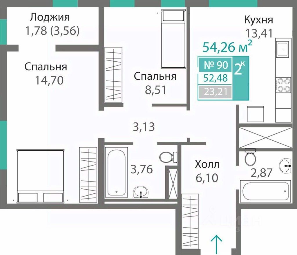 Продаётся 2-комнатная квартира в строящемся доме (Дом 1 (Секции Т2.2, Т4.1)), срок сдачи: I-кв. 2029, общей площадью 54.26 кв.м., на 9 этаже. Новый жилой комплекс "Благо" от застройщика "Монолит" расположен по адресу: Республика Крым, Симферопольский район, село Перово
